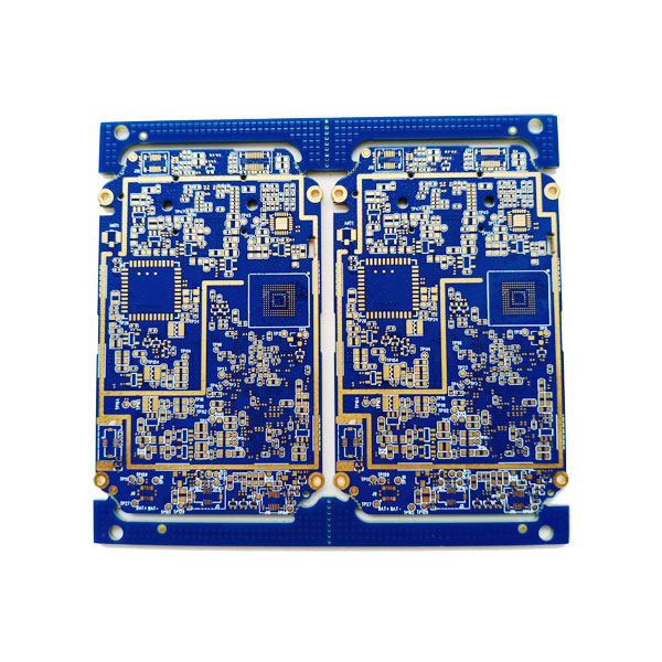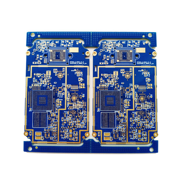 此款為:板厚1.6mm阻焊藍(lán)油絲印白字表面處理沉金1麥、過孔鋁片塞油、拼版格式1*2拼板加6mm工藝邊加2.0間距做2500set(5000PCS)
